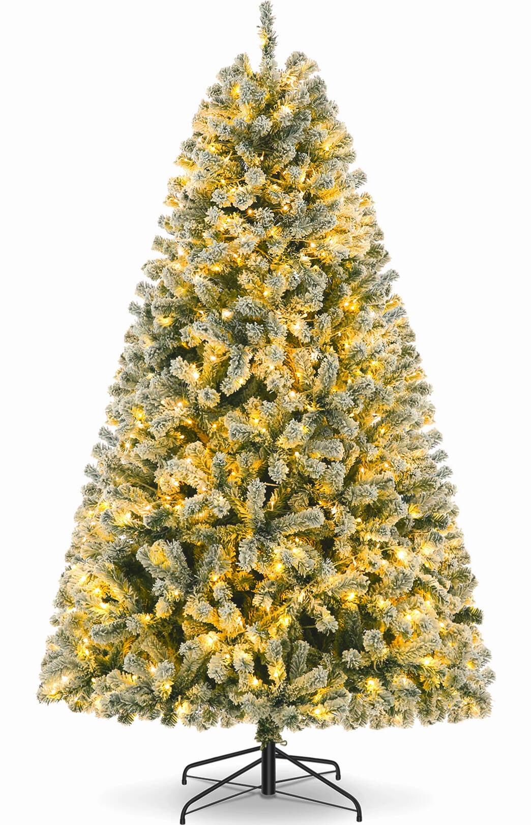 Funcid 6Ft Prelit Christmas Trees, Snow Flocked Artificial Christmas Pine Tree with 250 Warm Lights, 733 Branches, Metal Base, for Home Store Office Party Decoration