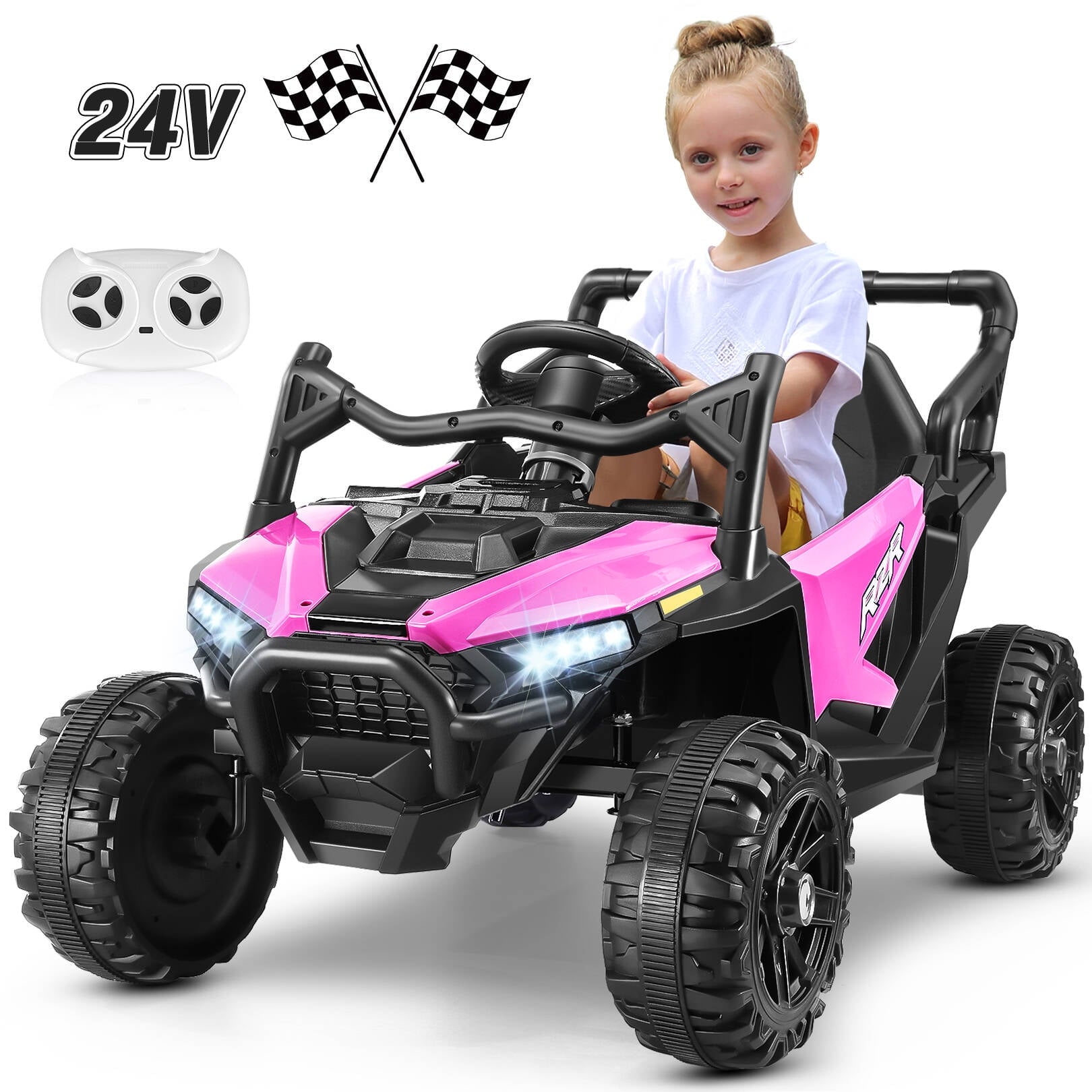 VIBESPARK 24V Ride on Toys for Kids, Ride on Cars with Remote Control, Powered Ride on Electric Car w/ Bluetooth, Music Player, LED Lights, Pink