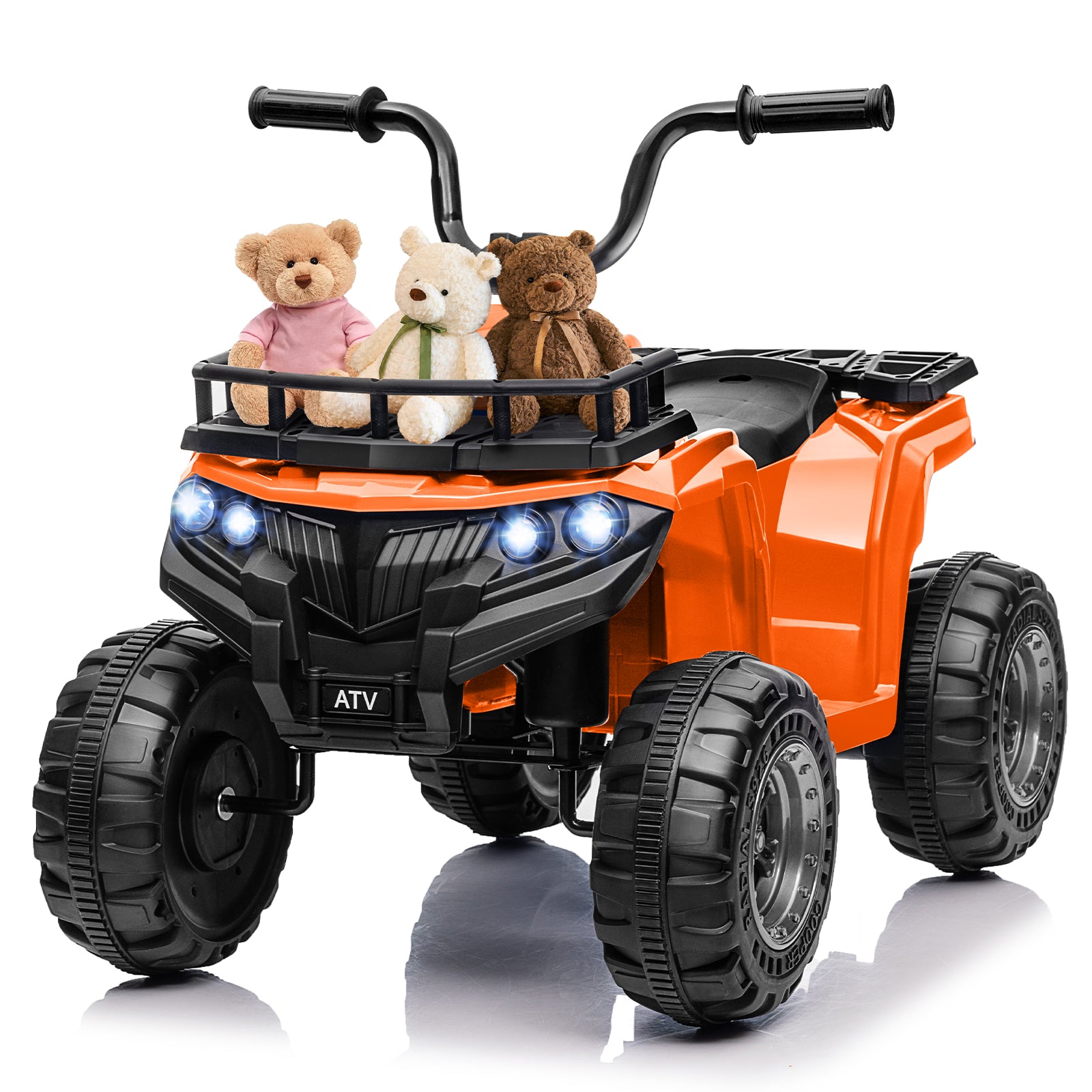 VIBESPARK 12 Volt Ride on Toys for Toddlers, Kids Ride on ATV 4-Wheeler Quad Electric Car with Storage Basket, Ride on Cars w/ Built-in Music, LED Lights, One-button Start, Orange