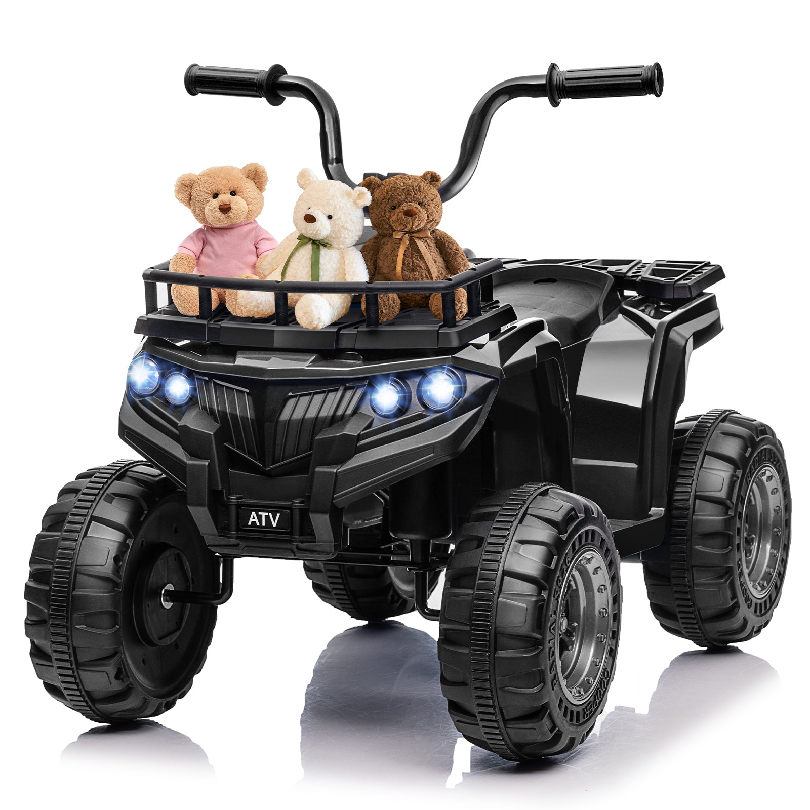 VIBESPARK 12 Volt Ride on Toys for Toddlers, Kids Ride on ATV 4-Wheeler Quad Electric Car with Storage Basket, Ride on Cars w/ Built-in Music, LED Lights, One-button Start, Black
