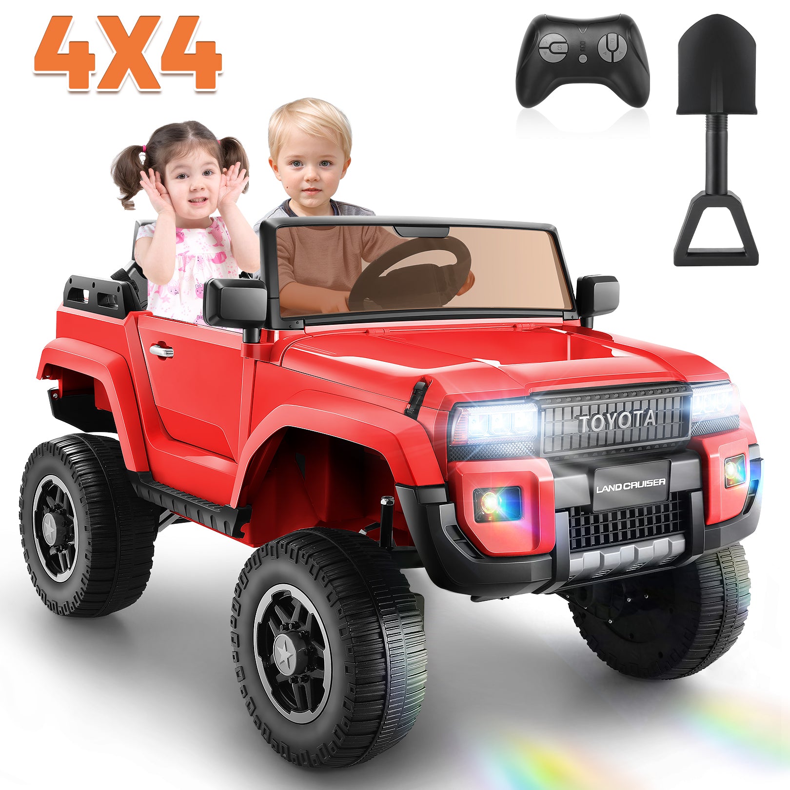 Licensed Toyota 24V Ride on Truck Car with 4¡Á100W Motors, Ride on Toys w/ 31'' Wide Seat, 4WD/2WD Switchable, Colored Decorative LED Lights, Suspension, Bluetooth, Red