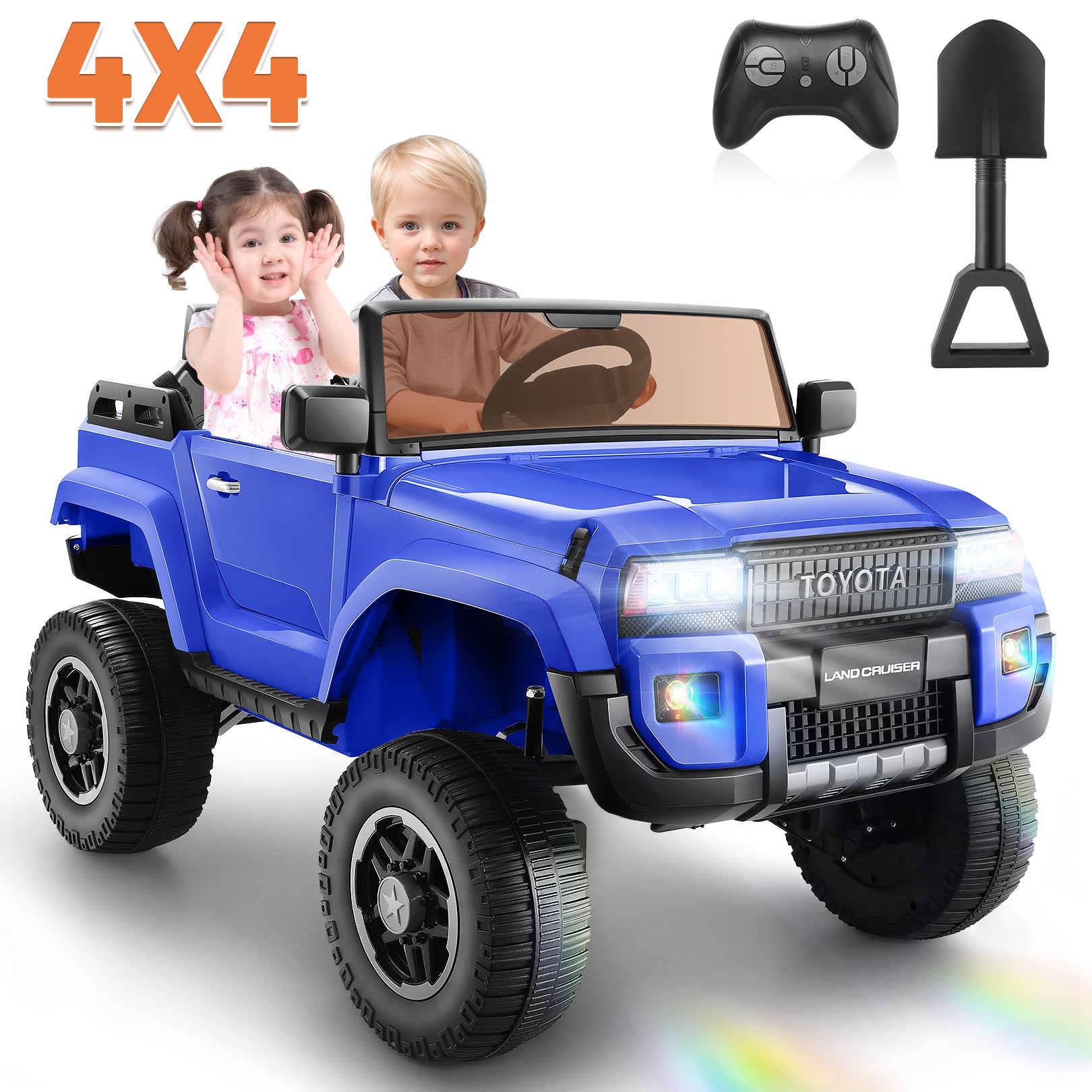Licensed Toyota 24V Ride on Truck Car with 4¡Á100W Motors, Ride on Toys w/ 31'' Wide Seat, 4WD/2WD Switchable, Colored Decorative LED Lights, Suspension, Bluetooth, Sky Blue