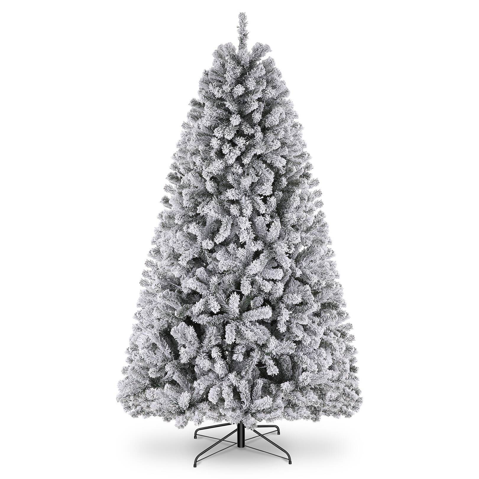 VIBESPARK 6FT Snow Flocked Christmas Tree, Artificial Imitation Christmas Tree, Hinged Pine Tree with 640 Branches, Foldable Metal Stand, Holiday Decorations, Indoor and Outdoor, White