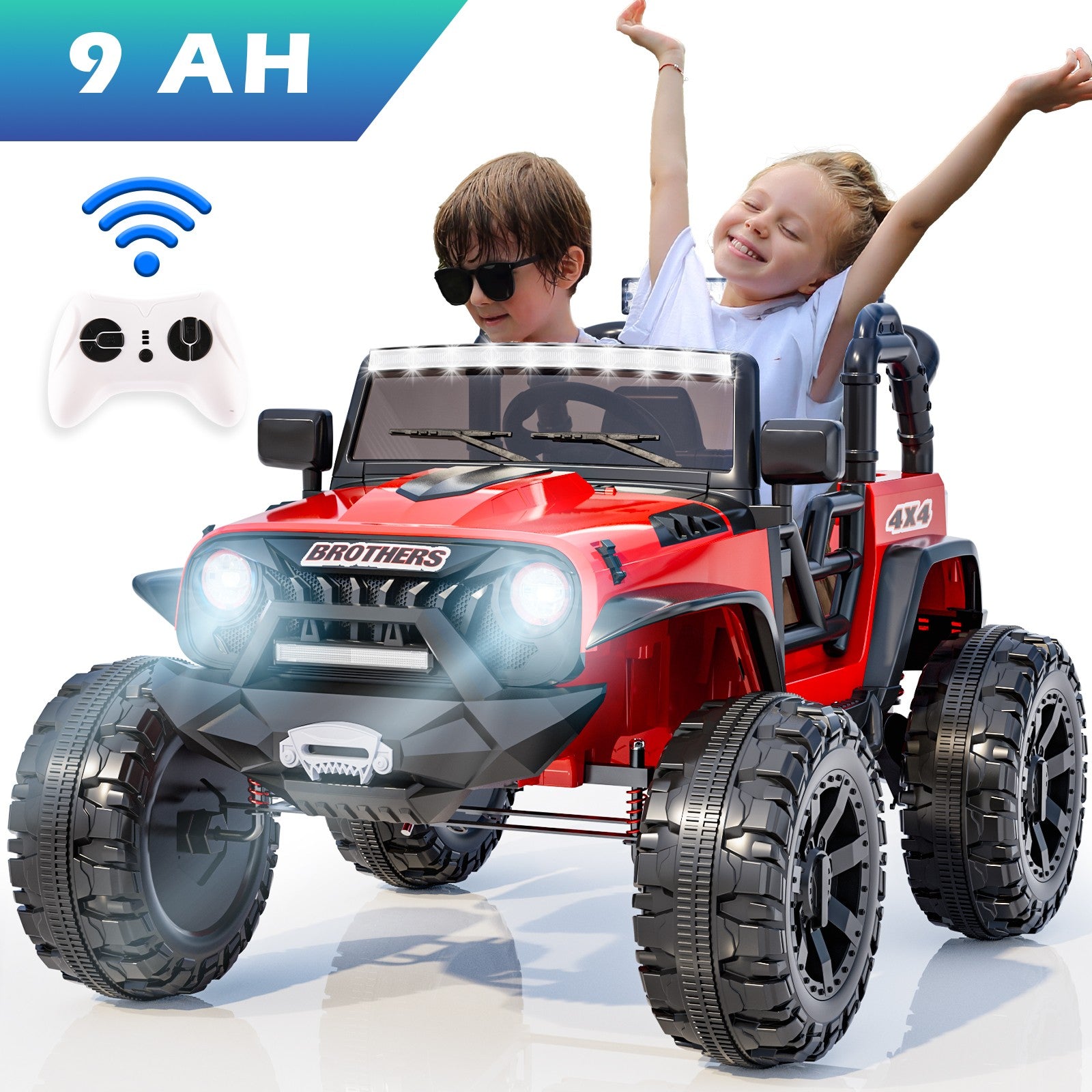 VIBESPARK 24V Ride on Truck Car 2-Seater Ride on Toys with Remote Control, 9AH Ride on Cars Electric Car for Kids w/ Bluetooth, Music, LED Head Lights & Rear Lights, Spring Suspension, Red