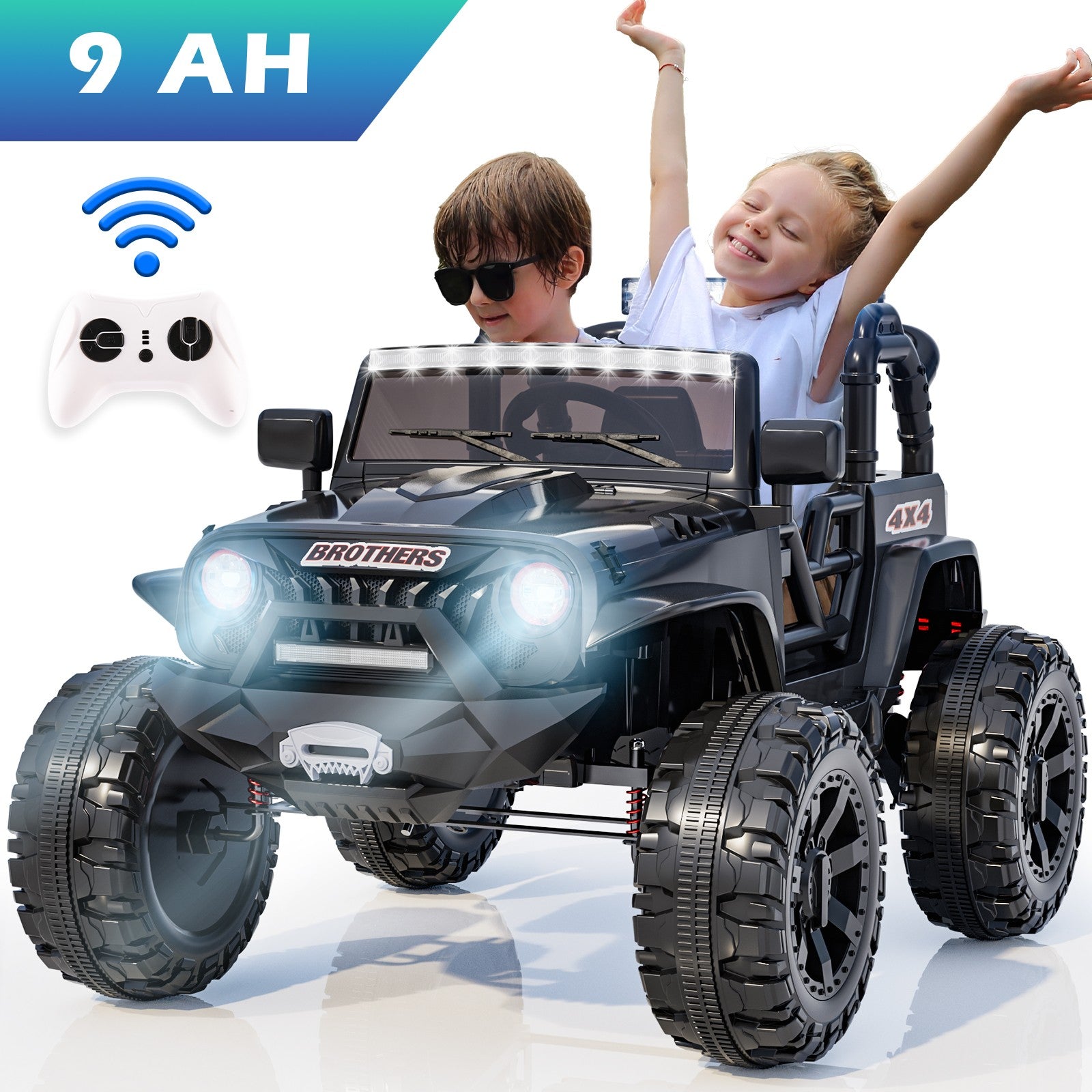 VIBESPARK 24V Ride on Truck Car 2-Seater Ride on Toys with Remote Control, 9AH Ride on Cars Electric Car for Kids w/ Bluetooth, Music, LED Head Lights & Rear Lights, Spring Suspension, Black