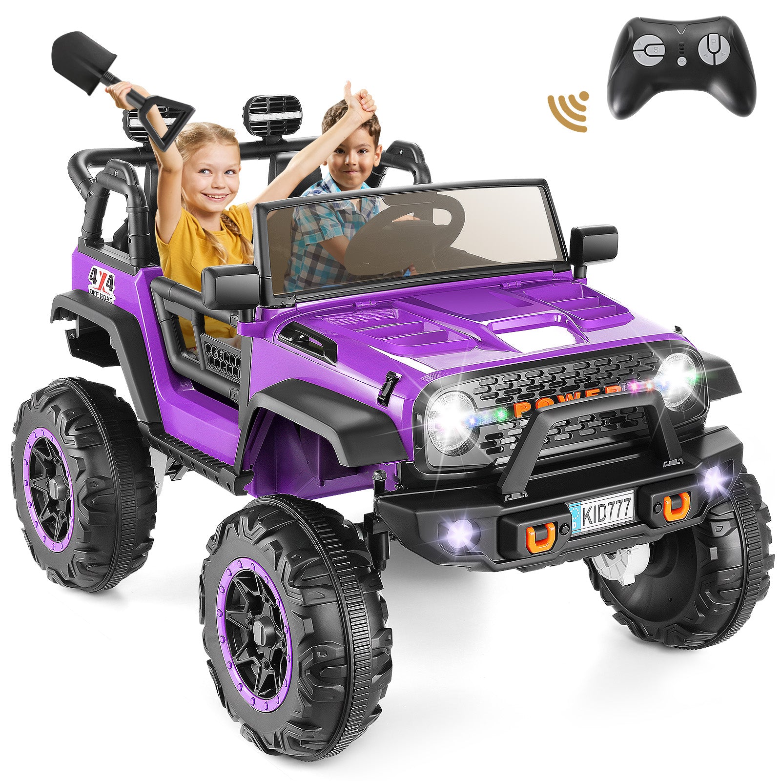 VIBESPARK 24V 2-Seater Ride on Toys, Ride on Truck with Colored LED Lights, 2WD/4WD Switchable Electric Car for Kids, Ride on Cars W/ Bluetooth, SD Card Slot, Toy Shovel, Spring Suspension, Purple