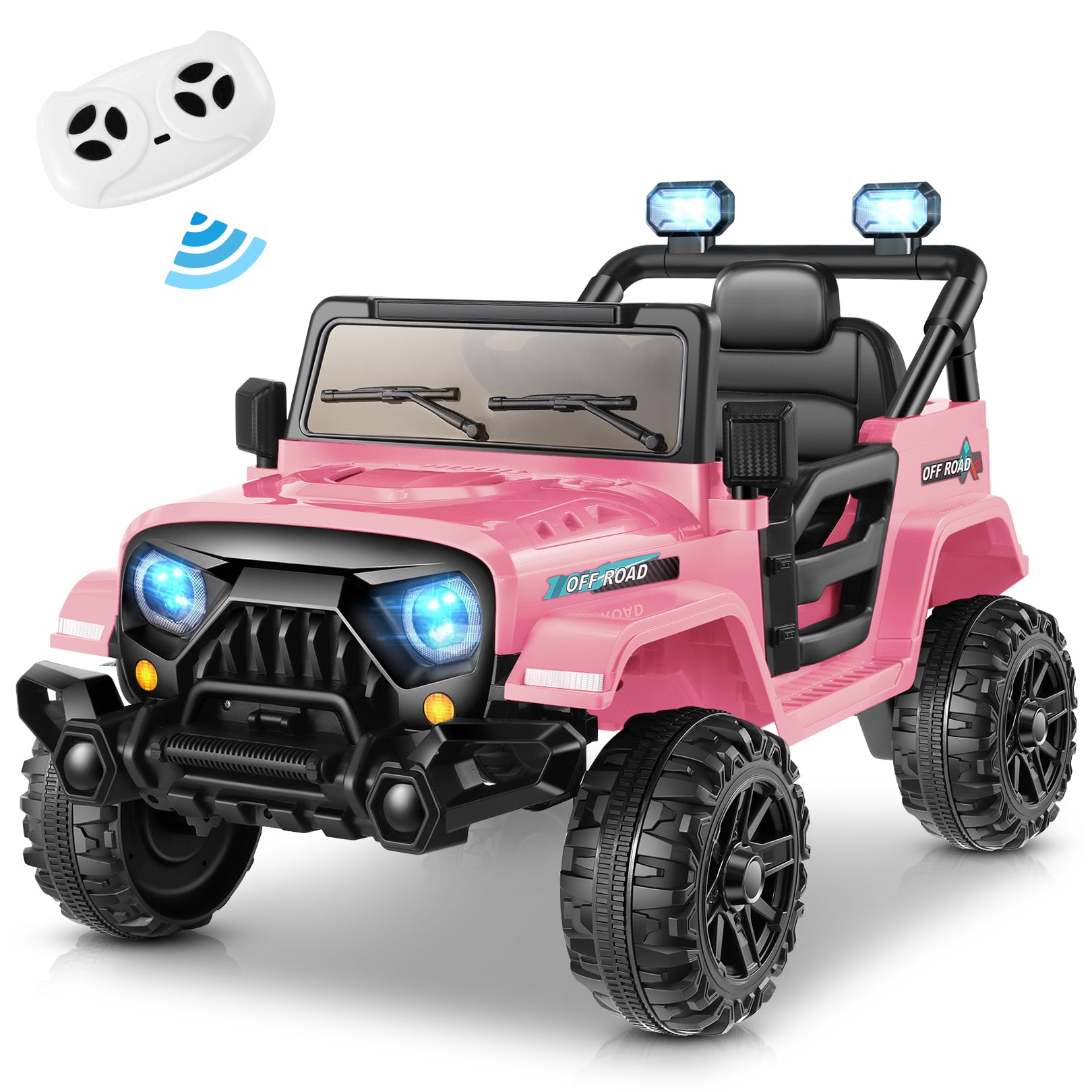 VIBESPARK 12 Volt Kids Ride on Truck Car Remote Control, 2X35W Motors, Electric Ride on Toys for Toddlers w/Bluetooth USB Music Player, 4 Wheels Suspension LED Lights Safety Belt, 3 Speed, Pink